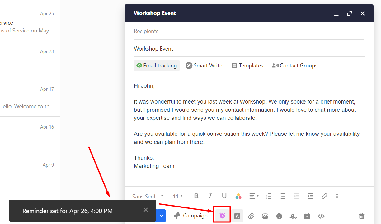 Setting Follow-up Reminders