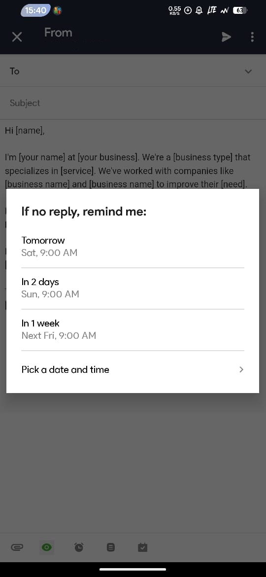 - Anda dapat mengganti waktu Follow-up Reminders dengan klik kembali pada ikon jam berwarna pink dan memilih waktu yang baru.
