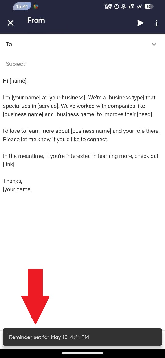 - Secara default Anda akan mendapatkan email baru berupa Reminder apabila email yang sudah Anda kirimkan tidak mendapatkan respon. Gambarannya seperti berikut:
