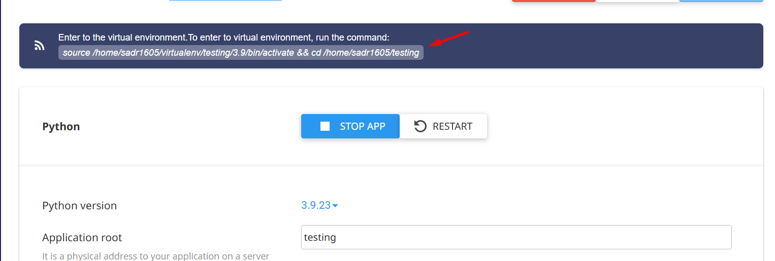 Setelah aplikasi dibuat, cPanel akan otomatis membuat virtual environment.