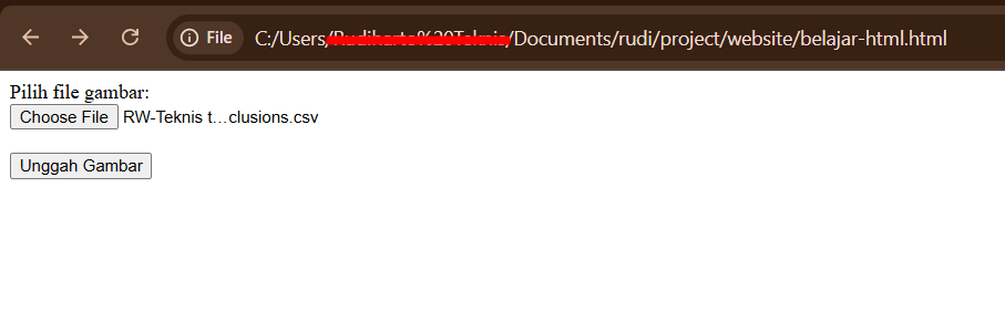 Formulir ini kami buat untuk membatasi file yang bisa diunggah, hanya bisa memilih file png, jpg, dan jpeg. Pengaturan ini terletak di bagian accept=”.png, .jpg, .jpeg
