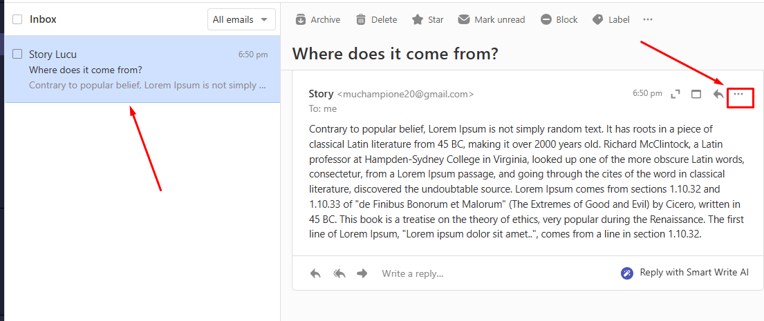 - Silahkan bisa masuk ke Inbox email dan klik salah satu email masuk yang ingin tambahkan ke Rules, dan tekan titik tiga pada isi email.