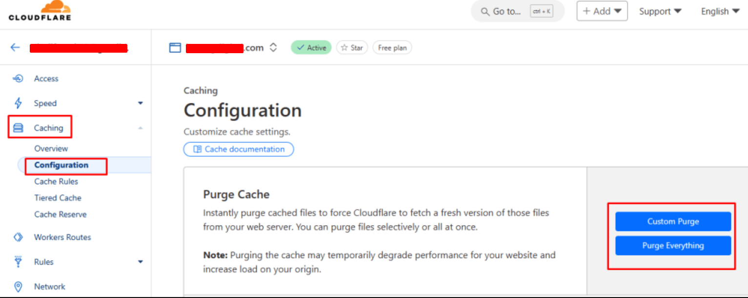 Selain itu, membersihkan cache Cloudflare juga disarankan untuk memastikan perubahan diterapkan dengan benar. Cache berfungsi sebagai penyimpanan sementara data website.