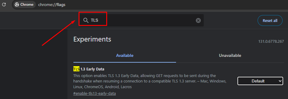 Bila Anda menggunakan versi Chrome yang lebih lama dan ingin memastikan website Anda aman, Anda bisa mengaktifkan dukungan TLS 1.3 secara manual. Berikut langkah – langkah mengaktifkan dukungan TLS 1.3: