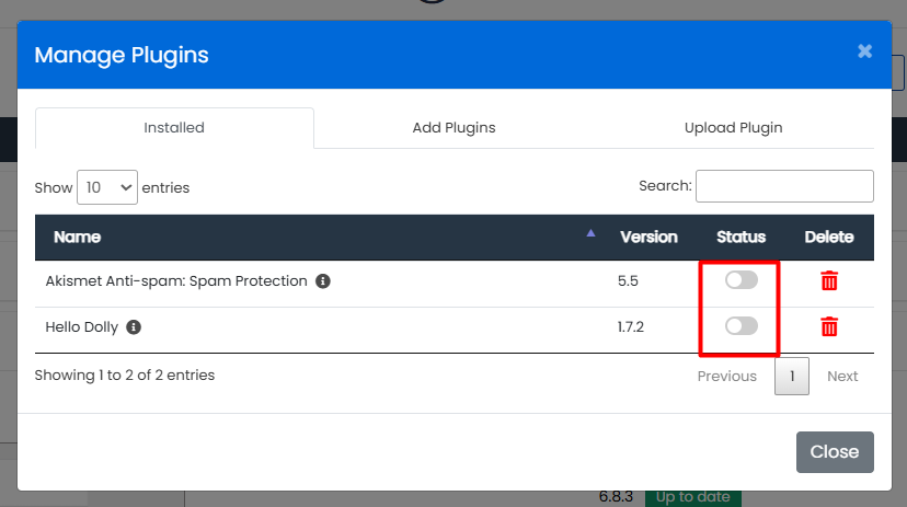 3. Disable Plugin