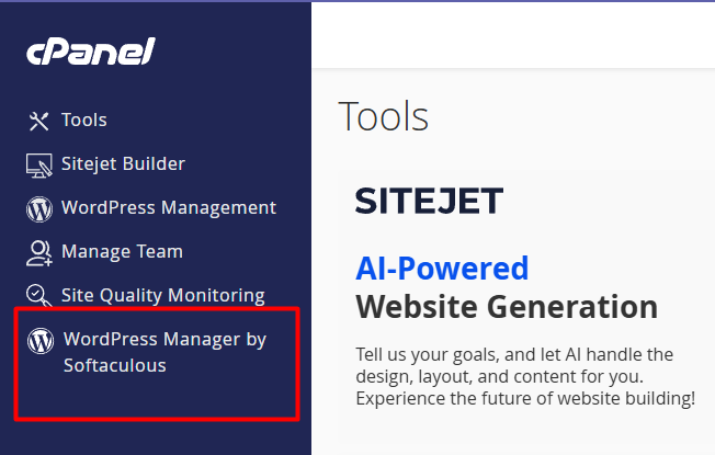 - Lalu masuk ke menu WordPress Manager by Softaculous