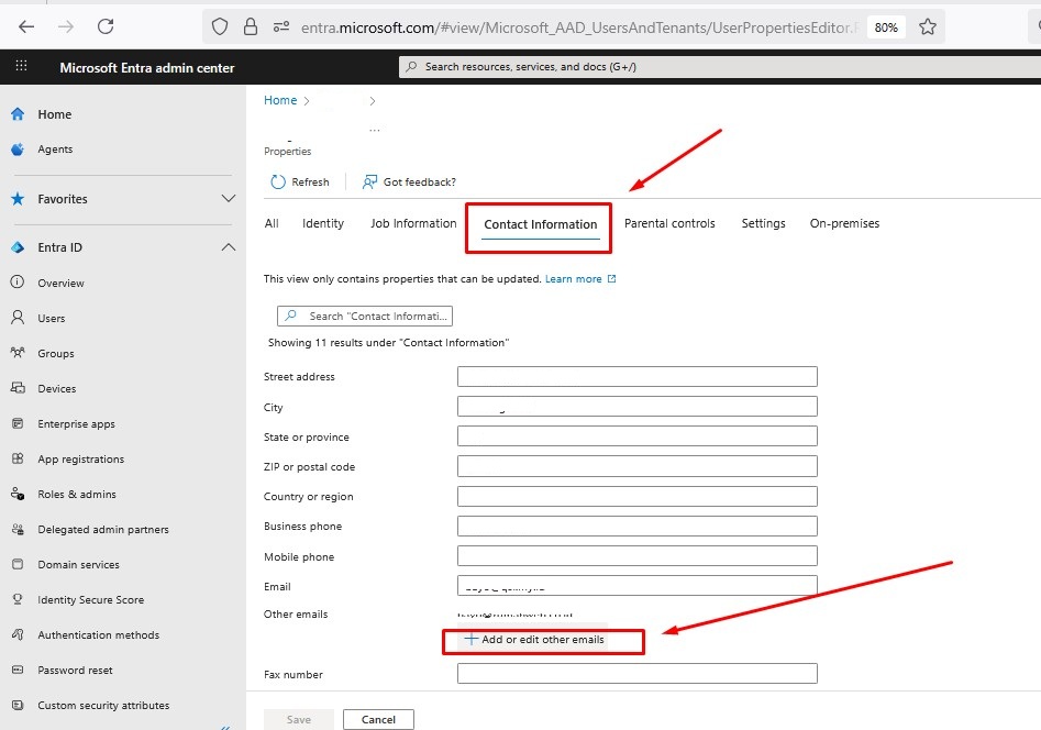 4. Klik pada bagian Contact Information lalu klik pada bagian Add or edit other emails.