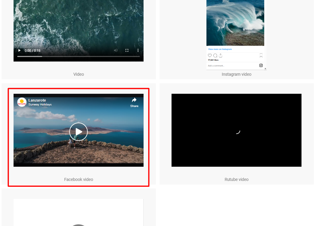 - Masuk ke menu media lalu pilih Facebook video.