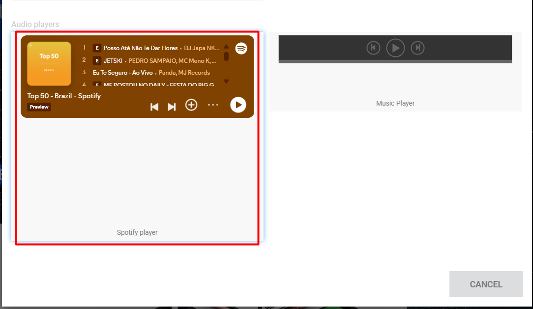 - Masuk ke menu media lalu pilih Spotify player.