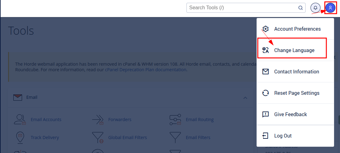Berikut cara merubah bahasa di cPanel pada tampilan Jupiter.