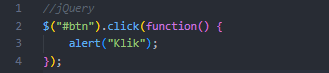 Untuk memahami perbedaan secara praktis, Anda dapat melihat contoh sederhana berikut yang digunakan untuk menampilkan pesan saat sebuah tombol diklik. Contoh ini menunjukkan bagaimana JavaScript dan jQuery menangani event yang sama dengan cara penulisan yang berbeda.