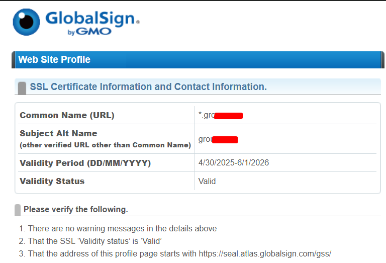 Berikut adalah contoh validasi salah satu domain yang menggunakan SSL dari GlobalSign.
