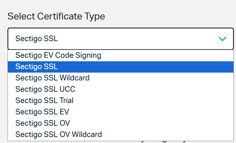 - Pilih jenis sertifikat SSL yang Anda gunakan.