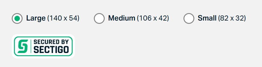 - Setelah memilih desain dan ukuran, Sectigo akan menampilkan kode script HTML yang perlu Anda gunakan. Silahkan salin kode tersebut dan tempelkan kode ke dalam website Anda.