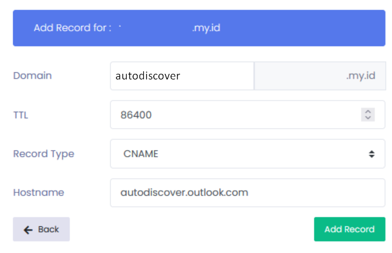 - Buatlah record DNS sesuai dengan tipe verifikasi yang Anda pilih di Microsoft 365.
