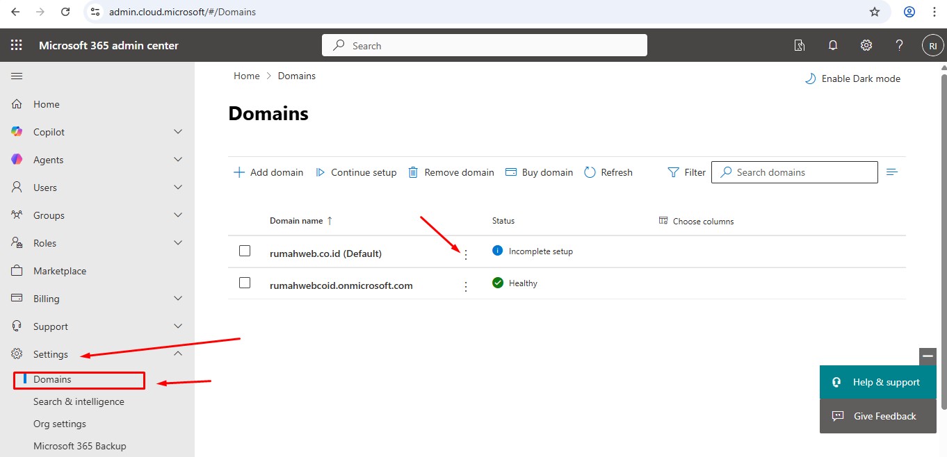 Berikut ini langkah-langkah menghapus domain dari akun microsoft 365.