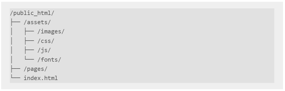 Organisir aset website Anda dengan struktur folder yang konsisten: